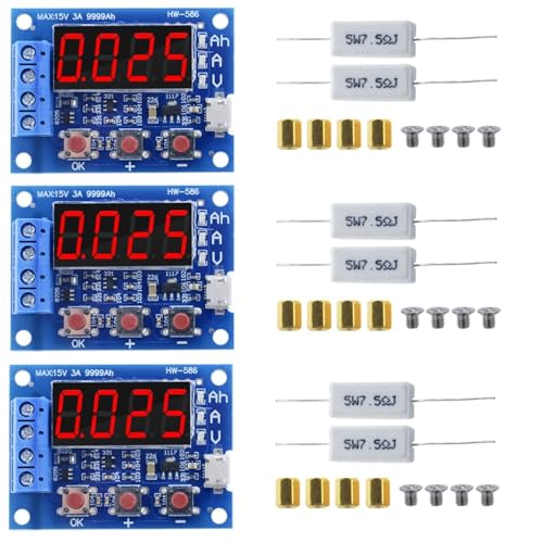 جهاز اختبار سعة البطارية معرفة نوع التفريغ 18650 فولت وسعة الشحن الخارجي للبطارية وغيرها من الاختبارات، 3 قطع