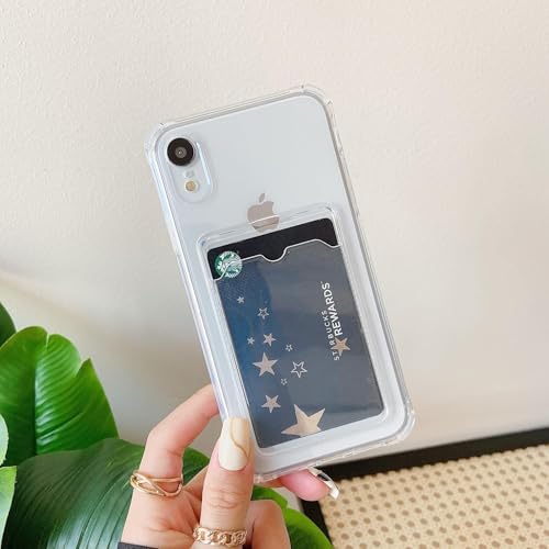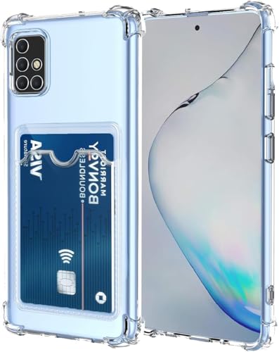 جراب موبايل شفاف بتصميم محفظة متوافق مع سلسلة هواتف سامسونج ، بفتحة للبطاقات وتصميم نحيف واقي ناعم من البولي يوريثين الحراري المقاوم للصدمات مع حامل بطاقات لطيف - شفاف (Samsung Galaxy A71)