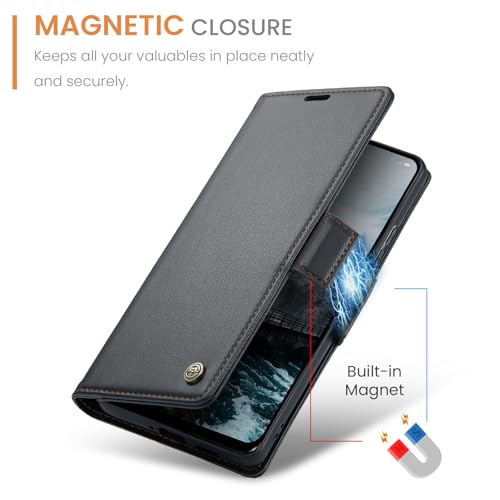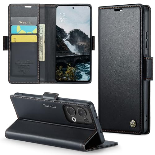 جراب موبايل من الجلد الصناعي الفاخر من انبلاك 023 بفتحة للبطاقات متوافق مع موبايل أوبو رينو 13 شبكة الجيل الخامس 5G (أسود)