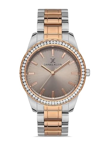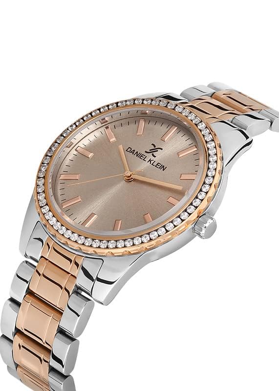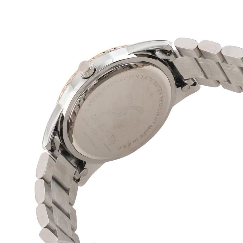 ساعة انالوج بعقارب وبمينا بيضاء وسوار فضي بينك وروز جولد للنساء من دانيال كلاين، موديل DK.1.13249-5