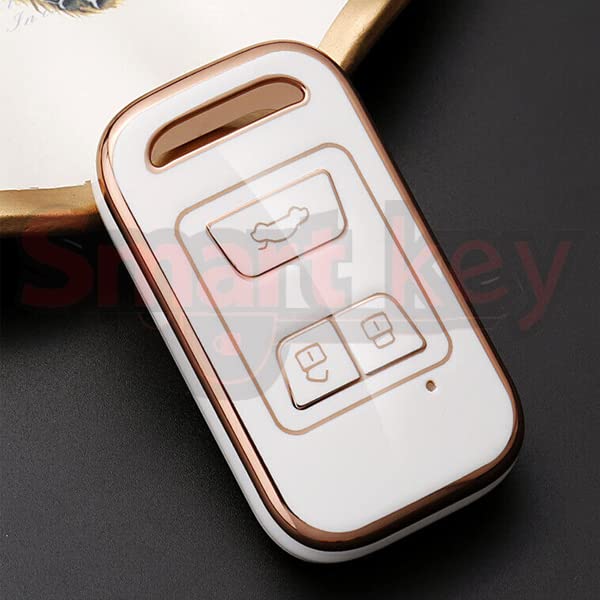 جراب ريموت كنترول فاخر من البولي يوريثين المقاوم للحرارة لمفتاح السيارة، لون ابيض كريمي