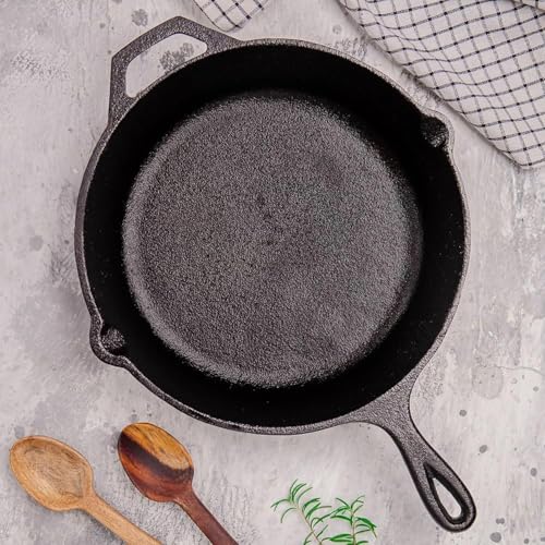 - طاسة مصنوعة من حديد مصبوب مقاس 30 سم مطلية مسبقًا بطلاء غير لاصق، مناسبة للموقد السطحي والفرن، مما يوفر طهيًا متساويًا واحتفاظًا ممتازًا بالحرارة.