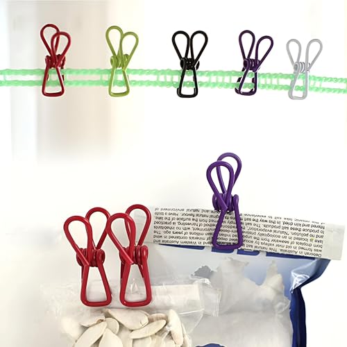 مشابك طعام وغسيل - مشابك ملونة من الستانلس ستيل مقاس 2 انش، متينة ومقاومة للماء للملابس واكياس الطعام وتنظيم الورق (10 قطع)