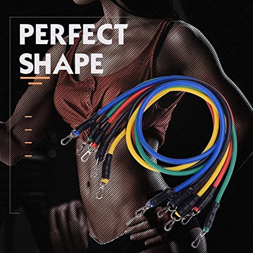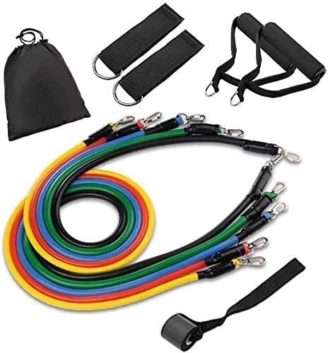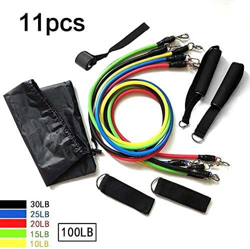 مجموعة من 11 قطعة من احزمة التدريب الاسطوانية، حلقة مقاومة للانزلاق، مع مرساة للباب، احزمة كاحل للمقاومة، مناسب للتدريب المنزلي وتمارين العلاج الفيزيائي لتقوية العضلات، معدن