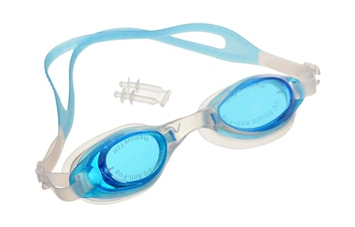 نظارة سباحة سيليكون مزودة بسدادات اذن - شفاف وتركواز