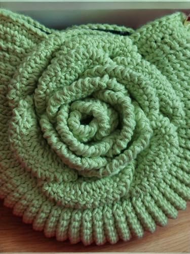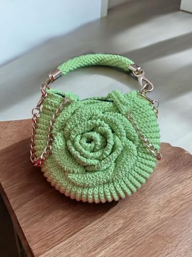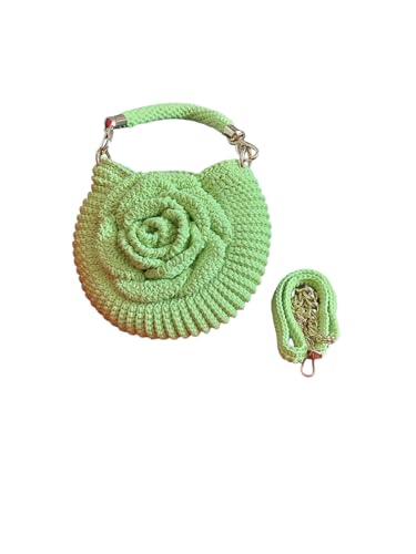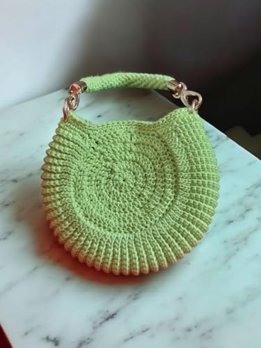 Handmade Crochet Shell Pattern Handbag, Light Green, 20 cm x 17 cm, Cotton Thread