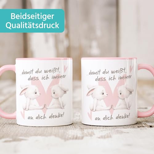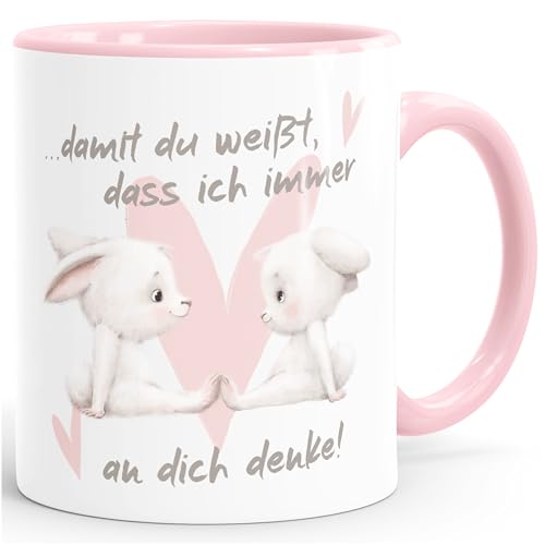 مج قهوة من سبيشال مي® هدية بعبارة الحب والصداقة وارنب زوج السيراميك بتصميم قلب داميت دو وايت داس اي ان ديش دينكي ابيض الداخل