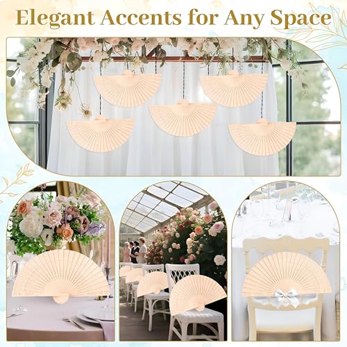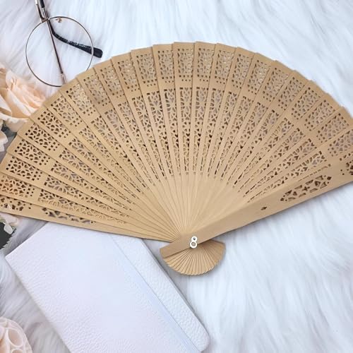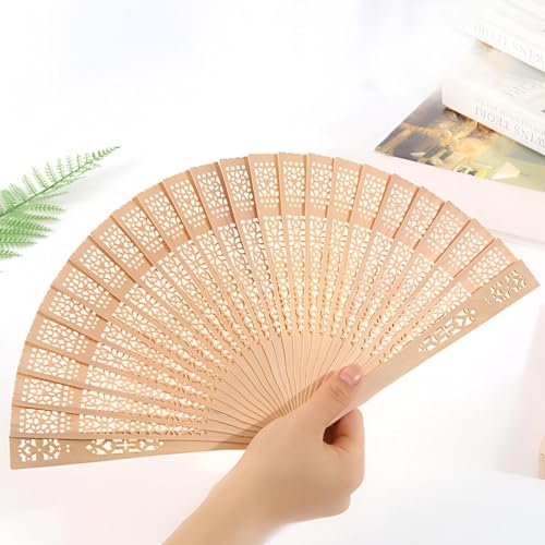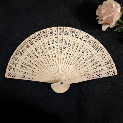 مروحة يد خشبية للنساء محمولة قابلة للطي - خفيفة الوزن مناسبة لحفلات الزفاف والحفلات الصيفية والاحتفالات، مناسبة كتذكار للضيوف أو أداة للرقص