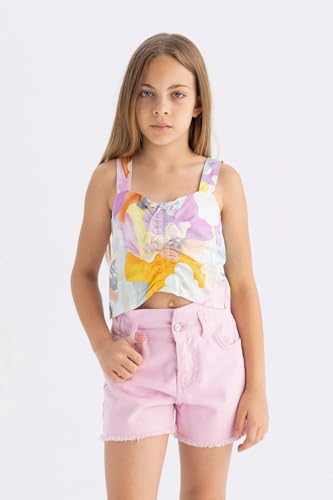 بلوزة بنسيج محبوك وبأكمام قصيرة وأشرطة للبنات C9513A8 من ديفاكتو