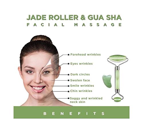 أداة تدليك الوجه بأسطوانة دوارة من اليشم لمكافحة الشيخوخة وجواشا - 2 قطعة