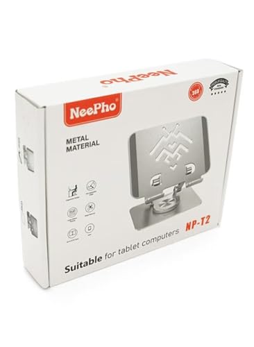 حامل موبايل والتابلت من ألومنيوم قابل للتعديل| حامل سطح المكتب قابل للطي مع وسادات مضادة للانزلاق | قاعدة دوارة 360 درجة | متوافق مع آيفون واي باد وسامسونج من نيفو NP-T2