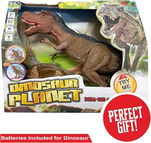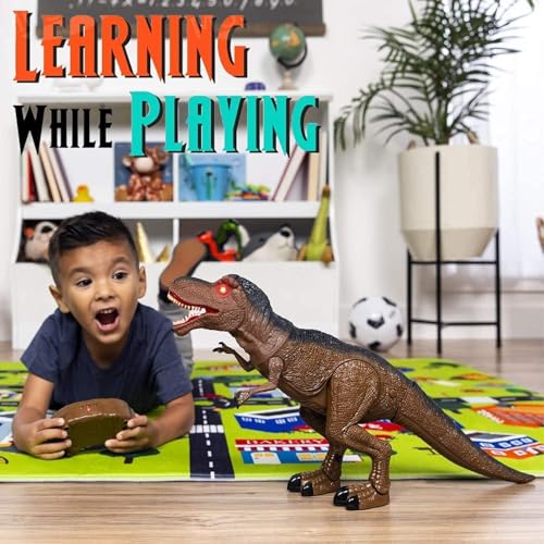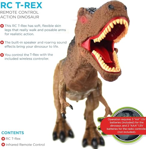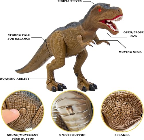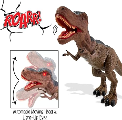 ديناصور تي-ريكس بجهاز تحكم عن بعد، حركة مشي مع عيون مضيئة، رأس متحرك ومؤثرات صوتية، لعبة لاسلكية تعمل بجهاز تحكم عن بعد