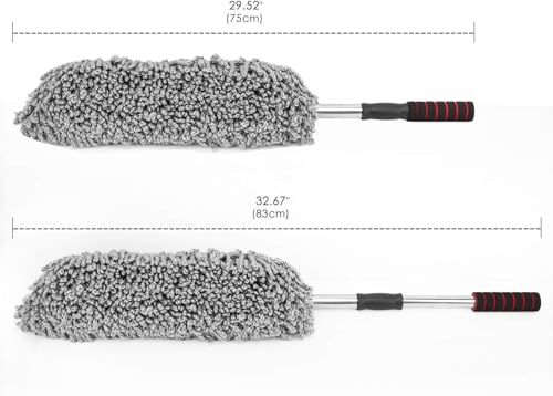 منفضة غبار للسيارة من المايكروفايبر فائقة النعومة بمقبض قابل للتمدد من ماي سوق ايج، منفضة غبار لتنظيف السيارة - رمادي - قطعة كبيرة تلسكوبية حوالي 55 الى 75 سم
