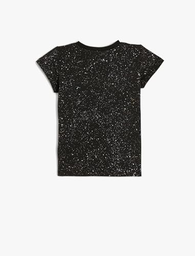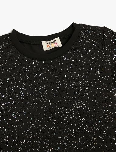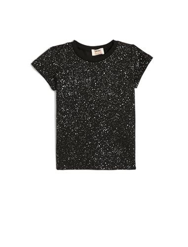 تيشرت قطن كلاسيكي بأكمام قصيرة ورقبة دائرية ضيقة ونقاط لامعة فضية للبنات من كوتون (عبوة من قطعة واحدة)
