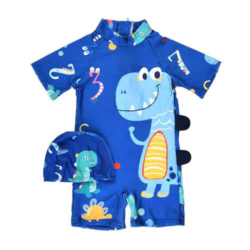 طقم سباحة من قطعتين من ميكس اند ماكس (مايوه نصف كم وبونيه سباحة) بطبعة ديناصور للأولاد بعمر 2-3 سنوات، متعدد الألوان