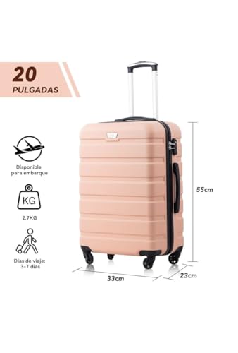 طقم حقائب سفر مكون من قطعتين، باللون الوردي الفاتح، مصنوع من البلاستيك الصلب، مزود بعجلات دوارة 360 درجة ومقبض تلسكوبي وأقفال آمنة