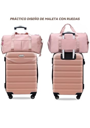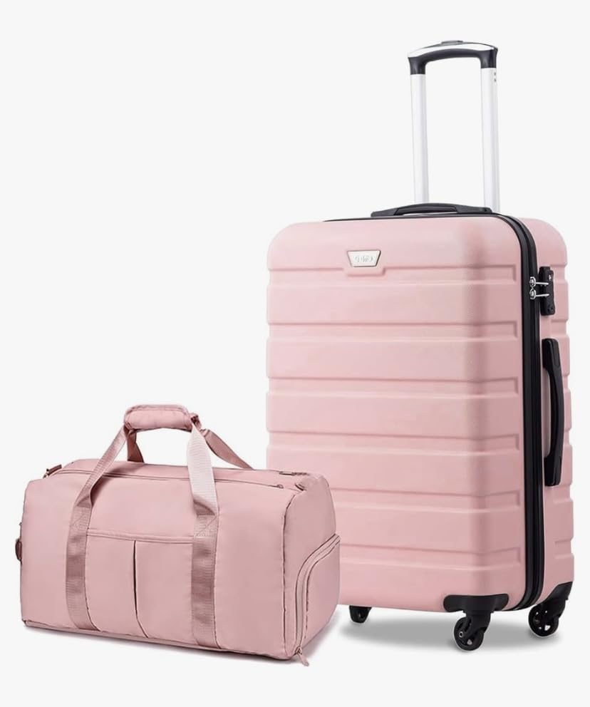 - مجموعة سفر: حقيبة سفر صلبة وردية مع حقيبة يد متناسقة، مثالية للسفر بأناقة
