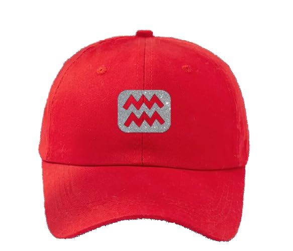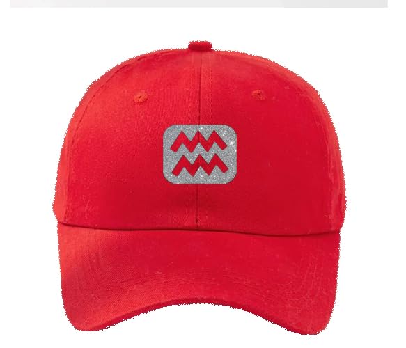 كاب (احمر) بشعار فضي للرجال والنساء مع حماية من الشمس. قبعة رياضية باشكال مميزة (برج الدلو) (131)
