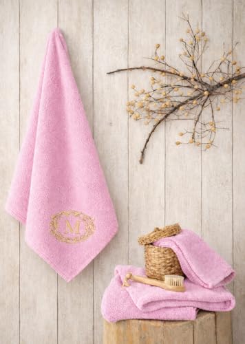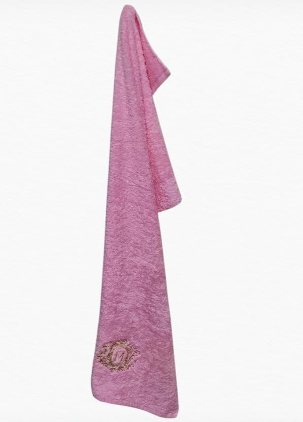 فوطة حمام مطرزة مصنوعة من القطن بنسبة 100% وعالية الامتصاص وسريعة الجفاف بتصميم كلاسيكي أنيق للفنادق والسبا (تطريز شكل حرف M) (بينك، 1.1 متر × 55 سم)