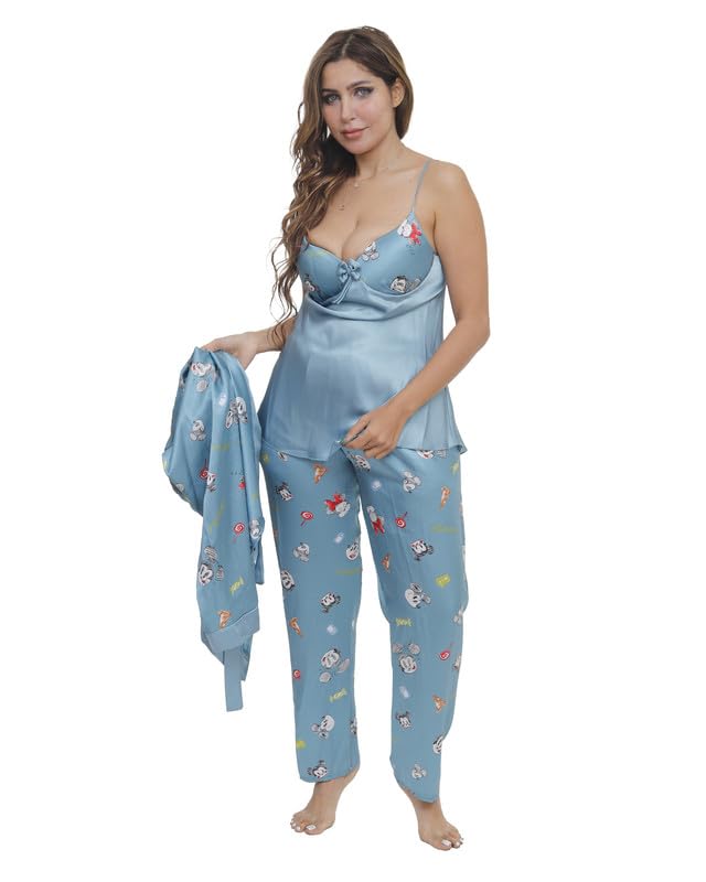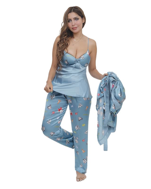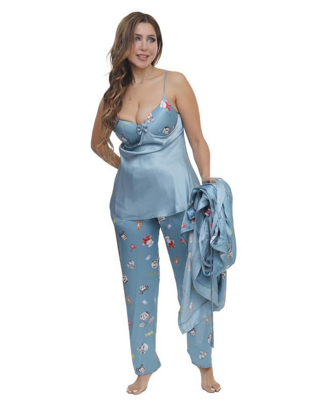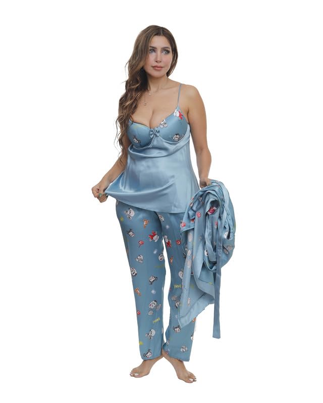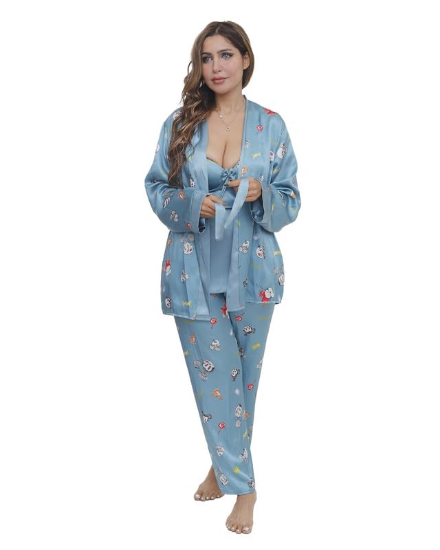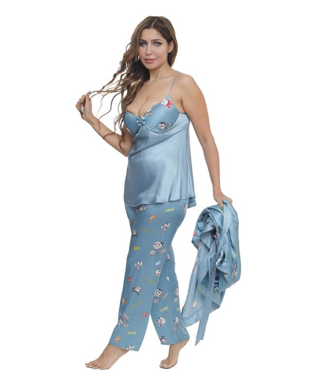 بيجامة بنطلون ساتان مع روب مقاس موحد للنساء من LUNA Lun-9009- Parent
