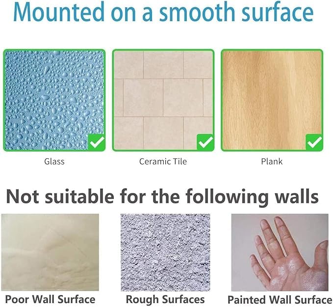 - ✅رف حمام مناسب لأنواع الجدران: بفضل الملصق اللاصق، يمكن تركيب أرفف الزاوية المخصصة لأدوات الدش على أي سطح غير مسامي وناعم ومسطح، بلاط السيراميك، والجرانيت، الفولاذ المقاوم للصدأ، والاكريليك، والأسطح المعزولة وأي سطح غير مسامي بلمسة نهائية لامعة. لا حاجة للثقب، لا تتلف جدارك.