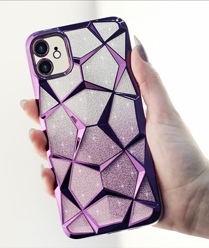 جراب موبايل شفاف سيليكون وبولي يوريثين مقاوم للحرارة بتصميم مطلي ومزين بجليتر متدرج اللون مع حماية لطيفة للكاميرا مقاوم للصدمات لموبايل آيفون 11 شاشة 6.1 بوصة للنساء والبنات من دلع موبايلك، أرجواني