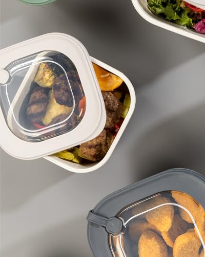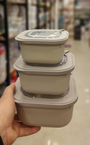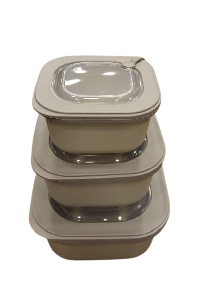 جيني مجموعة علب طعام بلاستيكية متدرجة من 3 قطع، بيج داكن مع غطاء شفاف، قابلة للتكديس، مقاسات متدرجة، اغلاق امن، مقاومة للحرارة