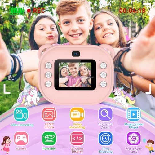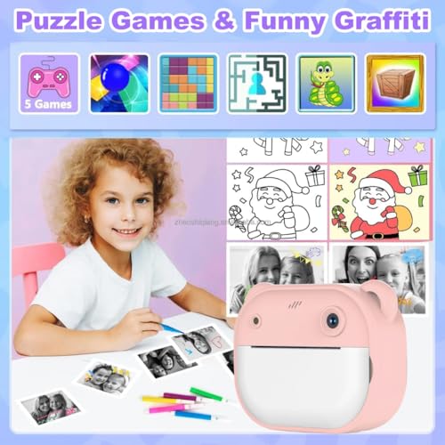 - كاميرا طباعة فورية هدية مميزة للاطفال تقوم بالتقاط الصور وطباعتها فورًا بضغطة زر بدقة 1080 بكسل هدية مثالية لأعياد الميلاد مناسبة للبنات والأولاد من سن 3 إلى 12 عامًا