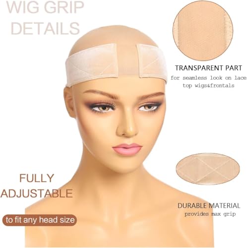شريط راس لتثبيت الشعر المستعار، شريط شعر مستعار غير قابل للانزلاق مقاوم للعرق لتثبيت الشعر المستعار في مكانه، قبعة شعر مستعار مرنة للشعر المستعار والدانتيل (بيج)