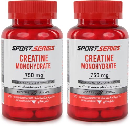 كبسولات كرياتين مونوهيدرات، 120 كبسولة، 20 حصة، لبناء العضلات، وما قبل التمرين، والتعافي، وبناء كتلة عضلية من سبورت سيريس (عبوة من قطعتين)