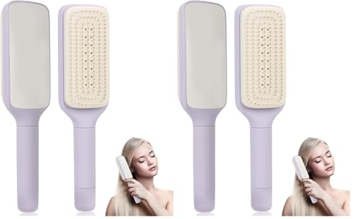 فرشاة فك تشابك الشعر ذاتية التنظيف للنساء والرجال فرشاة شعر عضوية بتصميم دوار وبدون شد للشعر، فرشاة احترافية لفك تشابك الشعر الرطب والجاف من داجسد،(بلون أرجواني) (عبوة من قطعتين)