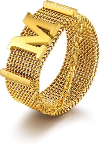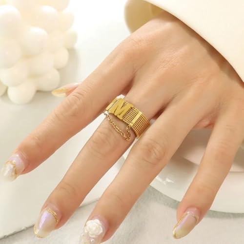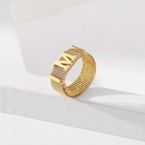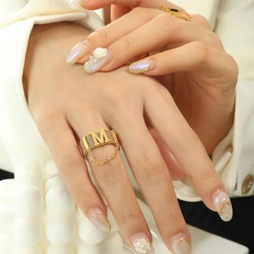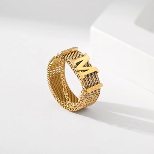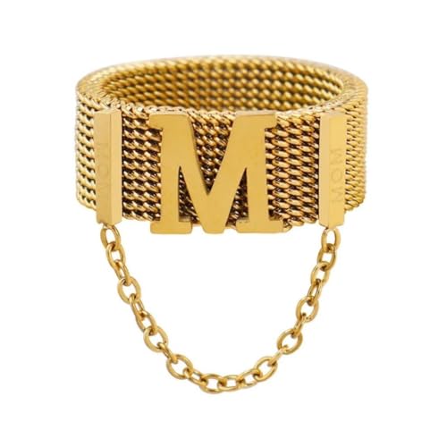 خواتم سلسلة هيب هوب علي حرف M ذهبية ، مصنوعة من ستانلس ستيل عيار 18 قيراط والفولاذ المقاوم للصدأ للنساء وهوه يناسب حميع الاشخاص . من فيروز جوليري .
