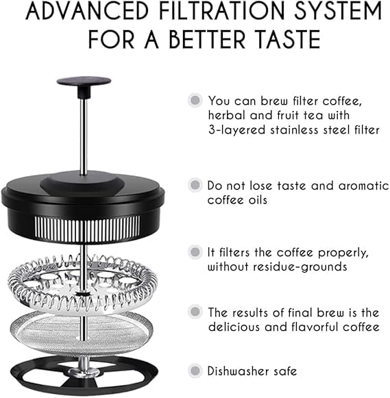 - ✅ (تصميم عصري) مع كوفي بريس السعة 600 مللي، يمكنك تحضير القهوة والشاي بسهولة في المنزل أو المكتب أو في أي مكان آخر.