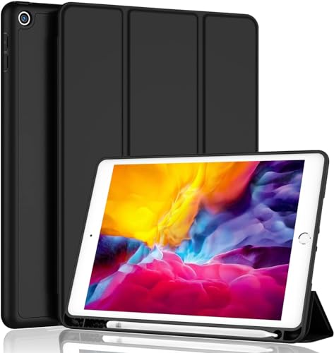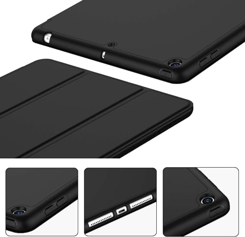 جراب حماية كاملة عملي بظهر سيليكون مزود بحامل قلم وميزة الاستيقاظ/ النوم التلقائي متوافق مع جهاز ايباد 9.7 بوصة (2017/2018) ايباد برو 9.7 بوصة 2016 ايباد اير 2/1 من Next store (اسود)