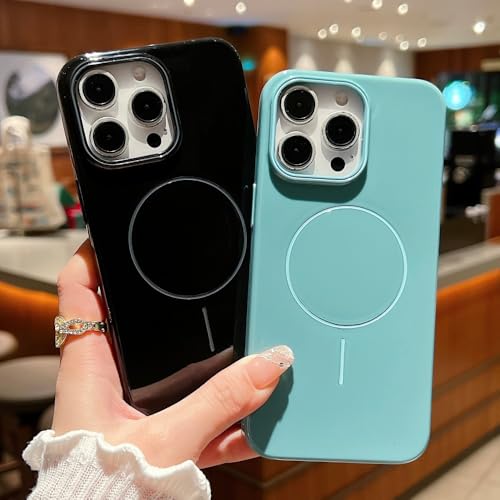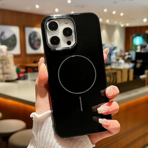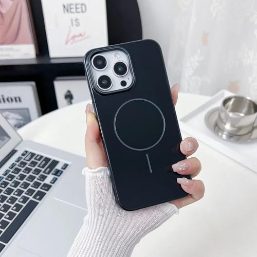 جراب هاتف رفيع لامع من Next Store من مادة TPU الناعمة متوافق مع iPhone 13 – تصميم نحيف يدعم الشحن اللاسلكي مع غطاء مغناطيسي أنيق – (أسود)