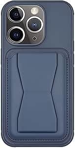 جراب جلدي من اس ال ستور متوافق مع آيفون 14 برو، مقاوم للصدمات، بجيب خلفي لتخزين البطاقات وحامل مدمج، مصنوع من جلد صناعي لمظهر أنيق وإمساك مريح (لون أزرق)
