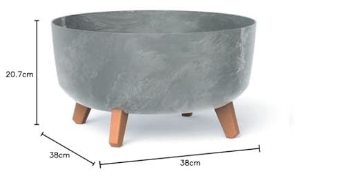 أصيص زهور جراسيا بمظهر خرساني منخفض من بروسبيربلاست، مقاس 38 سم، رمادي