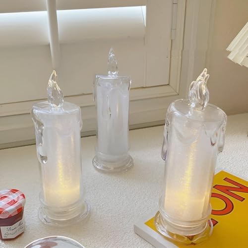 شموع للديكور - شموع فنية للاحتفالات والمناسبات الخاصة، تعزز جو المنزل مع توهج آمن وواقعي مناسب لحفلات الزفاف أو تزيين الحفلات (3 قطع)