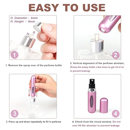 - زجاجة بخاخ عطر صغيرة قابلة لإعادة الملء مصممة خصيصًا للسفر، مما يجعلها مريحة لحمل عطورك المفضلة أثناء التنقل دون وجود حجم كبير من الزجاجات الكبيرة.