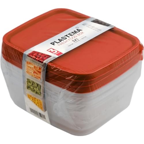 حاويات تخزين منزلية من بلاستيما (لون أحمر) سعة 1 لتر، 3 قطع