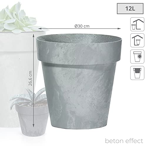 أصيص زهور مكعب الشكل بمظهر خرساني من بروسبربلاست، مقاس 30 سم، لون رمادي