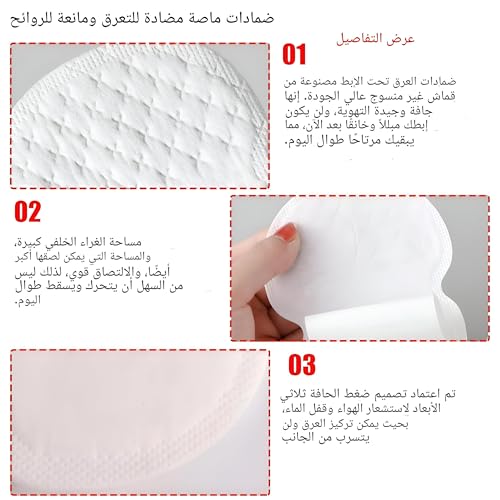 - صُنعت وسادات امتصاص العرق تحت الإبط هذه من مادة غير منسوجة عالية الجودة وفائقة النعومة ومزودة بمسامات للتهوية وغير مرئية تقريبًا. توفر قدرة امتصاص فائقة ولزوجة كافية للثبات في مكانها دون ترك أي بقايا، مما يضمن الراحة لجميع أنواع البشرة.