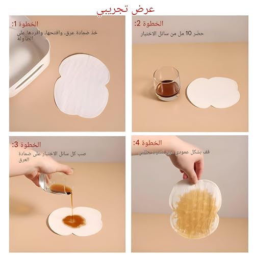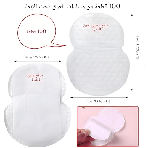 - تحتوي العبوة على 100 قطعة من وسادات العرق للاستعمال مرة واحدة، كل منها بحجم 12 × 9.5 سم. صُممت هذه الوسادات بحيث يمكن استخدامها والتخلص منها بسهولة بعد كل استعمال. لا حاجة للغسيل، مما يوفر حلًا خاليًا من المتاعب للتعامل مع العرق.