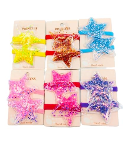 ربطات شعر جليتر ستار 6 ازواج - 12 قطعة من الانماط الملونة للبنات