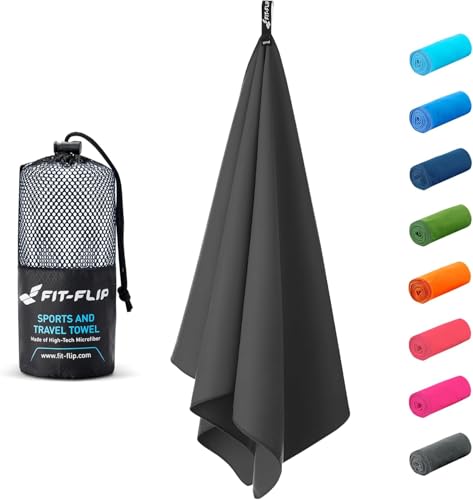 فوطة مايكروفايبر 12 لون من فيت فليب، صغيرة وسريعة الامتصاص وخفيفة الوزن بحجم كبير، مناسبة للسفر والجيم والشاطئ (50×100 سم، رمادي رصاصي مع شنطة)