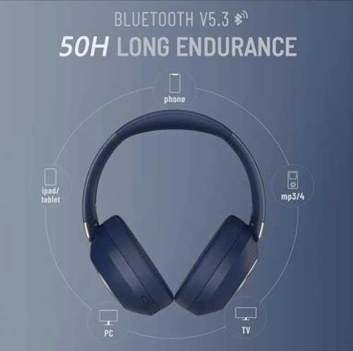 - سماعة رأس لاسلكية مزودة ببلوتوث V5.3 مع ميكروفون خارجي وتدعم بطاقة SD ، لون ازرق ، SD-1104