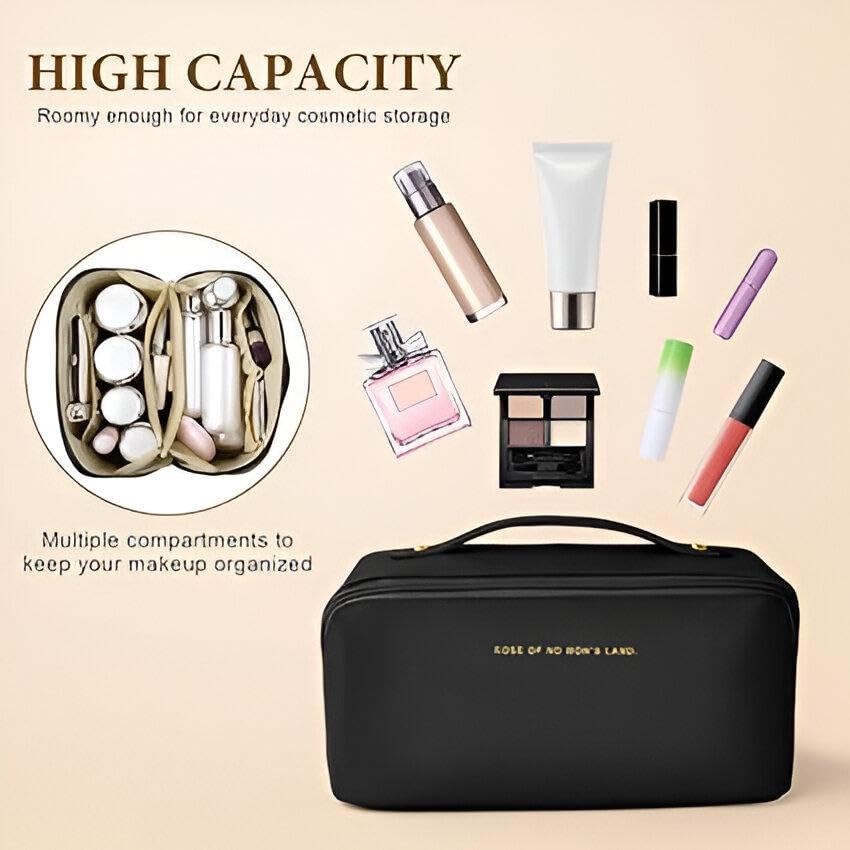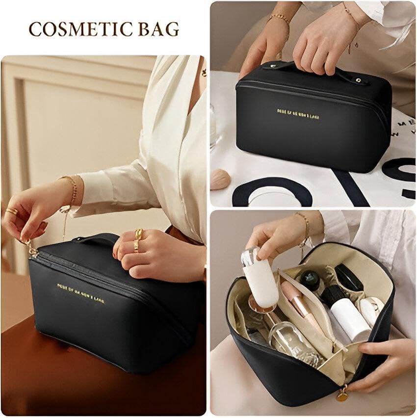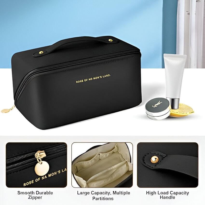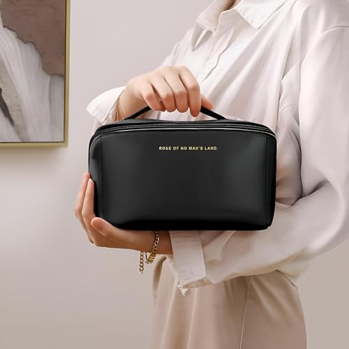 شنطة تخزين كبيرة لمستحضرات التجميل - شنطة سفر شاملة مصممة للمرأة العصرية اليوم (اسود)