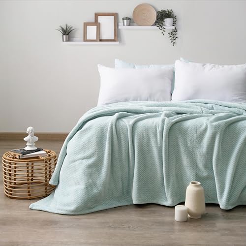 بطانية قطيفة موديل مصبوغ من البوليستر الناعم الفاخر دافئة وخفيفة الوزن للسرير أو الكنبة بألوان أنيقة لجميع ديكورات المنزل من مورانو، مقاس 2.20 × 2.40 م (أزرق بترولي)