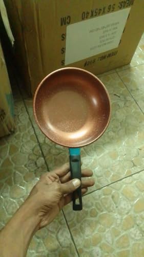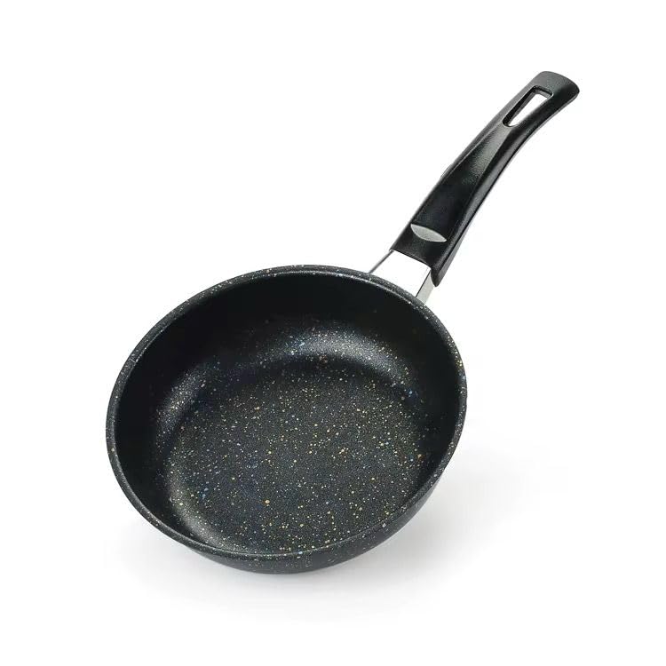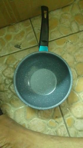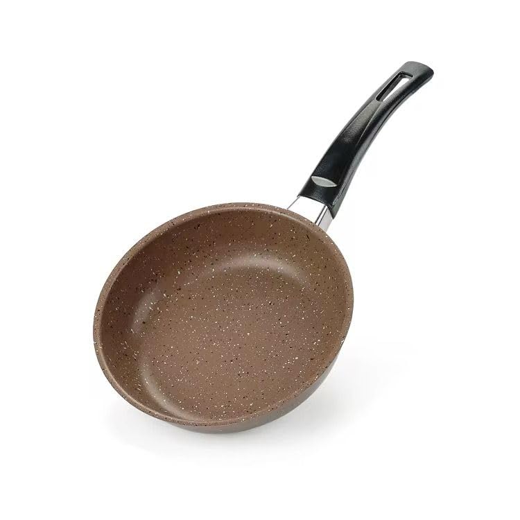 مقلاة موقد جرانيت بيد من الخشب تعمل بالحث، مقلاة غير لاصقة - مقلاة ووك كريمية للمطبخ (18 سم - جرانيت)