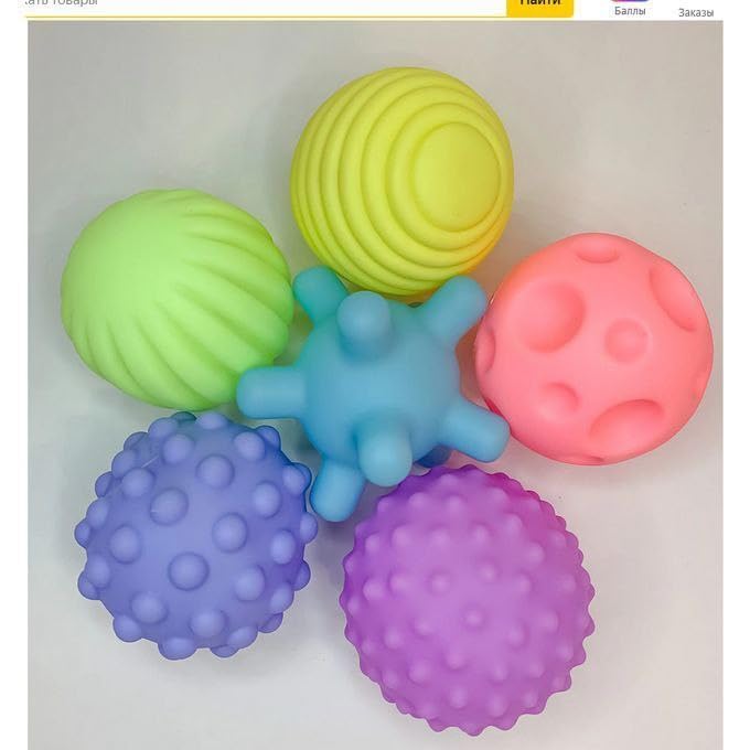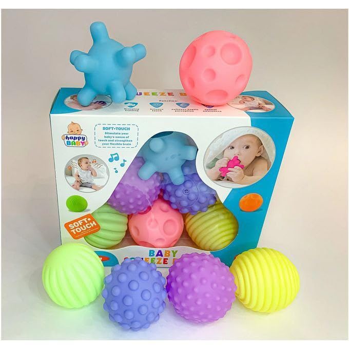 - التطور الحسي: مجموعة مكونة من 6 كرات ذات أسطح ونقوش فريدة مصممة لتحفيز استكشاف الطفل الحسي وتنمية حواسه اللمسية.
